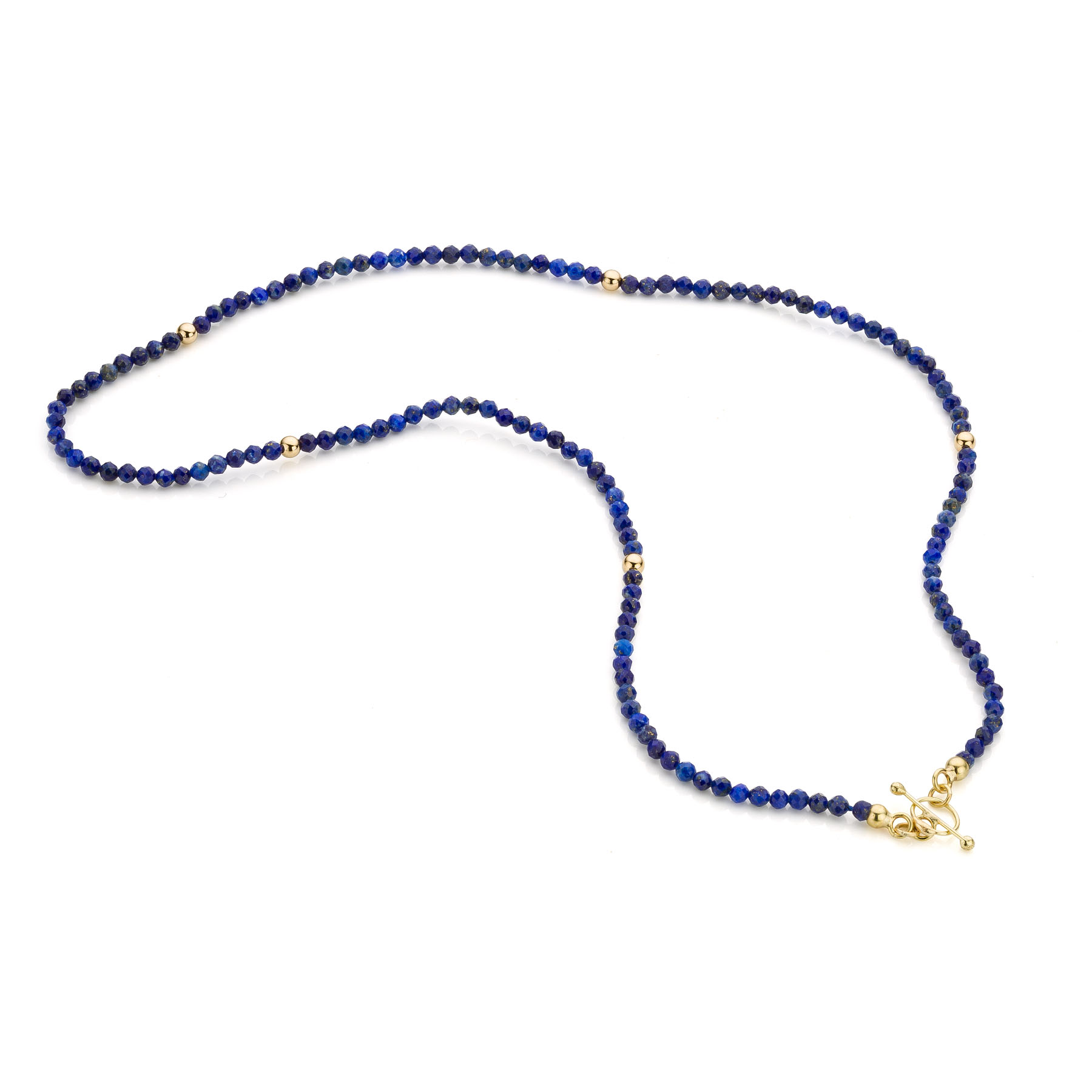 A necklace of Lapis Lazuli gemstone beads with 18-carat gold highlights