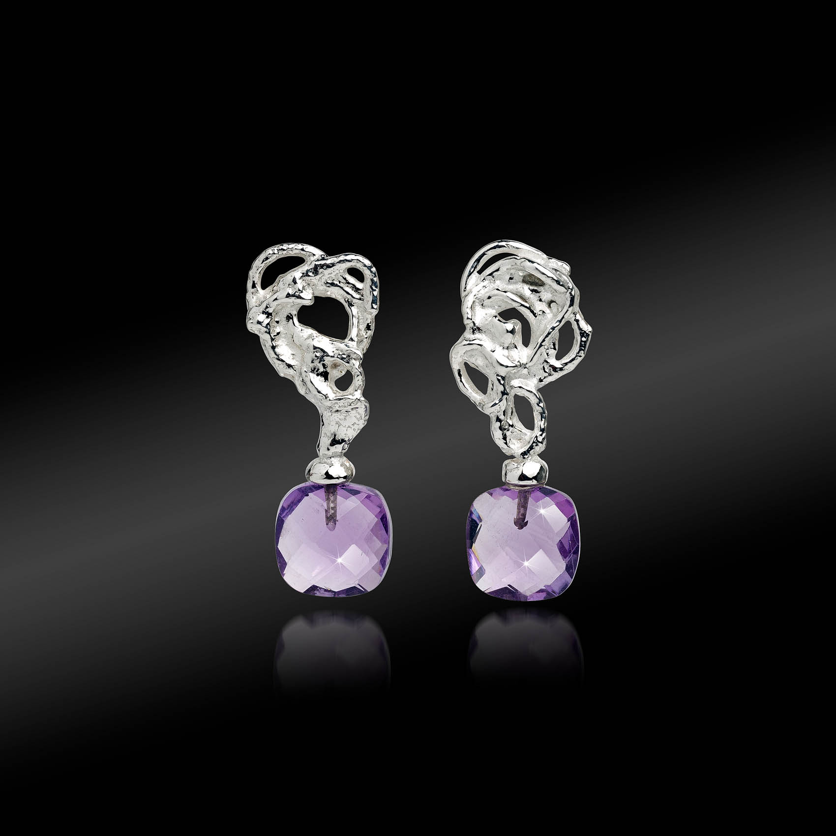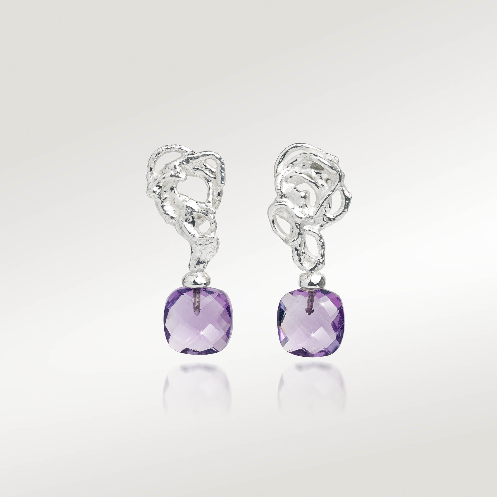Amethyst gemstones combined with handcrafted silver free forms